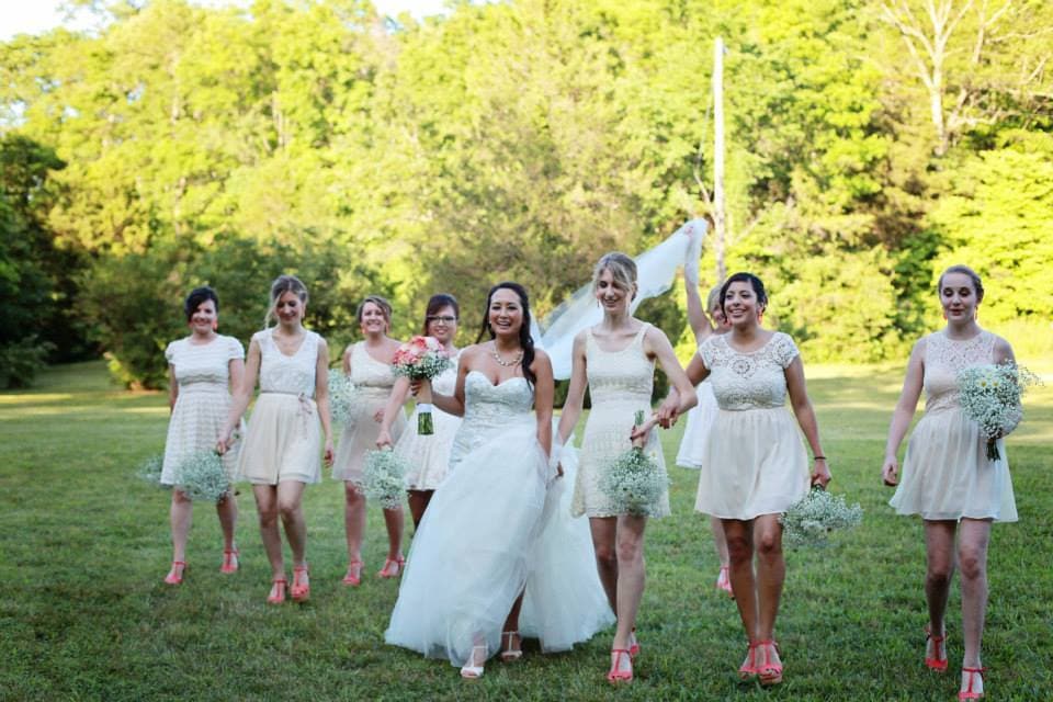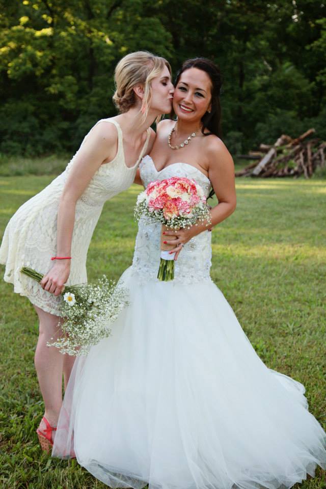 We used Fifty Flowers for our flowers. We wholesale ordered our flowers and put them together ourselves. There were around 2,000 flowers altogether and I believe we had around 75 different vases to put together. We also made all of the bouquets, including mine.