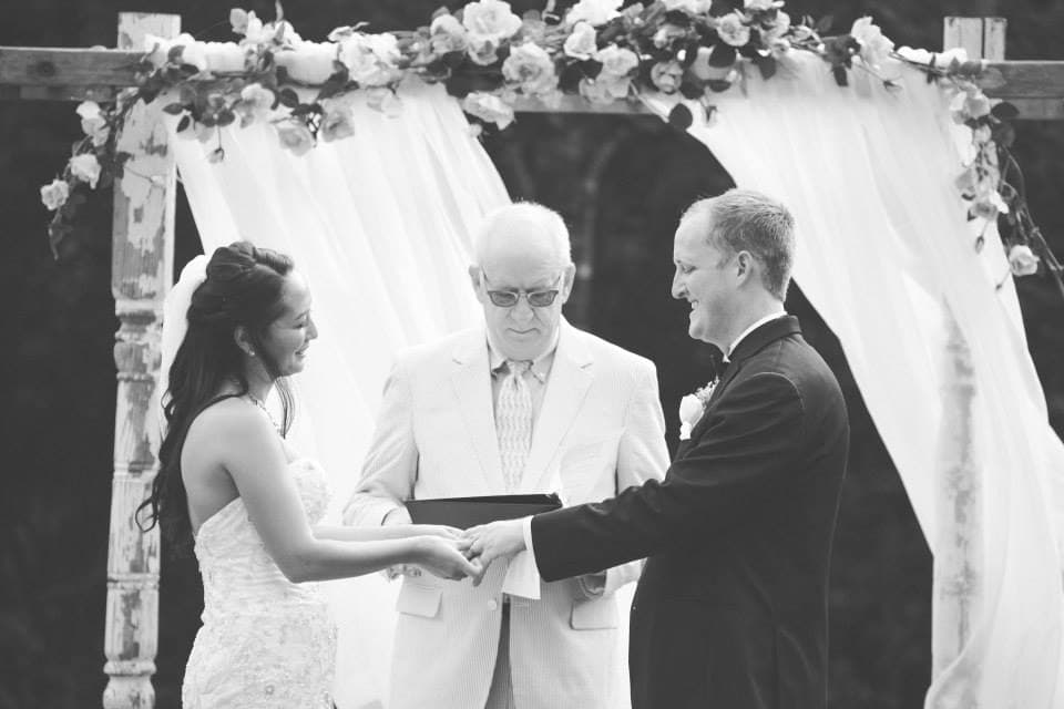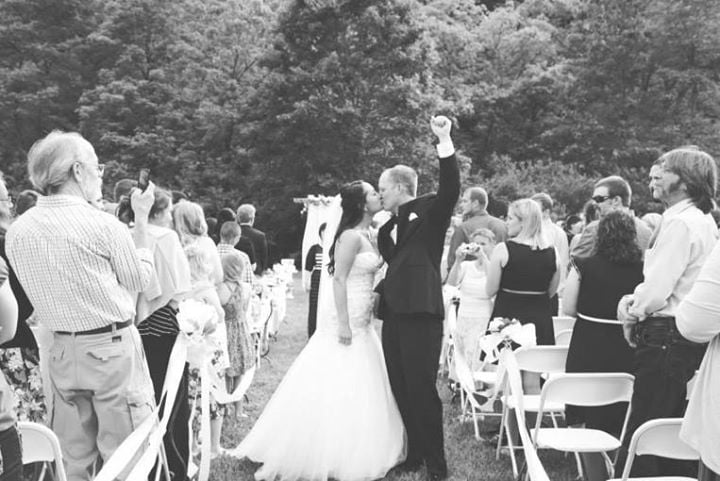 We rented our arbor from Worn Vintage. They rent out tons of different items for weddings and other events in the St. Louis area. They have many cute items but I only had so much in my wedding budget. We rented the arbor and drapes for $150.