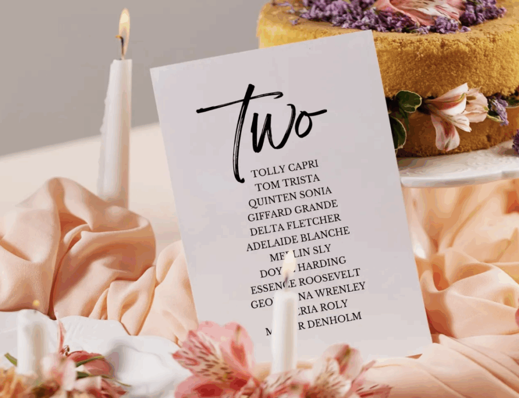 - Bundle with other matching items like welcome signs, table numbers, or menu cards.